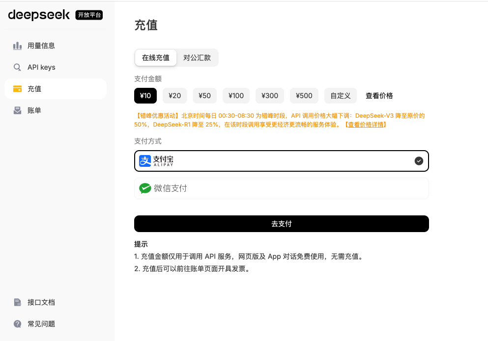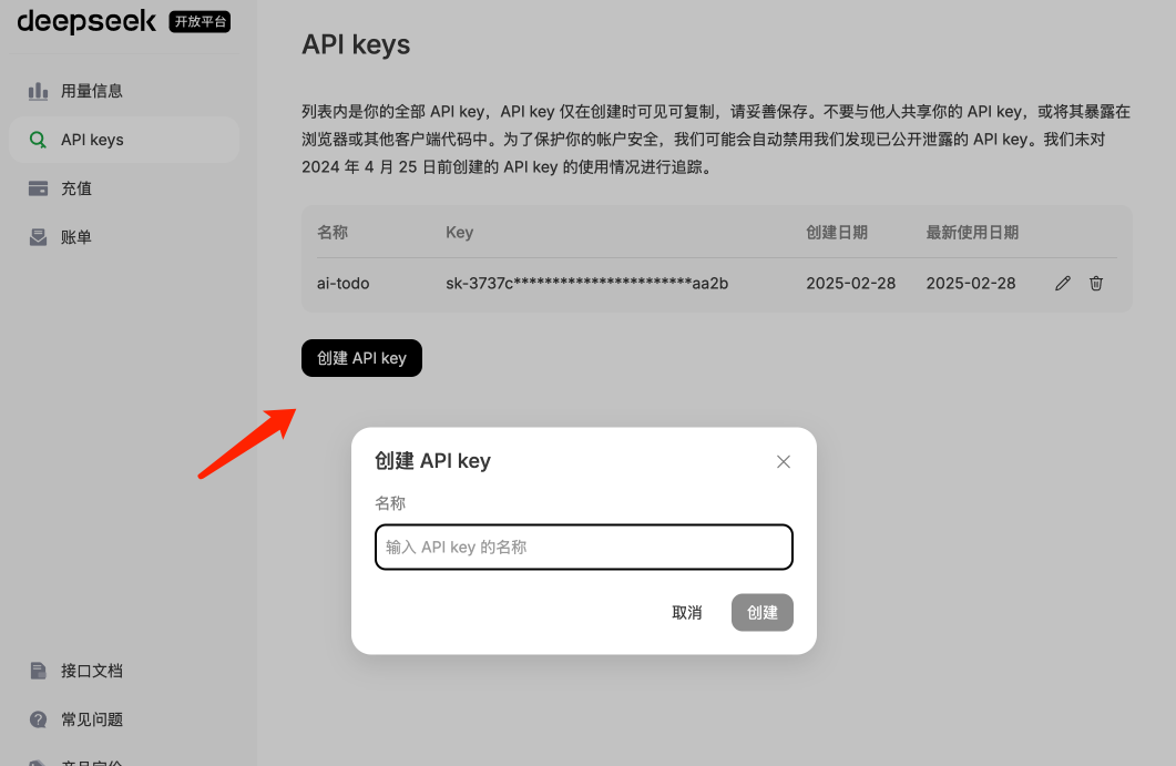 • 如果你没有用量,那可能需要充值一下(反正之后你肯定也会用到DeepSeek)