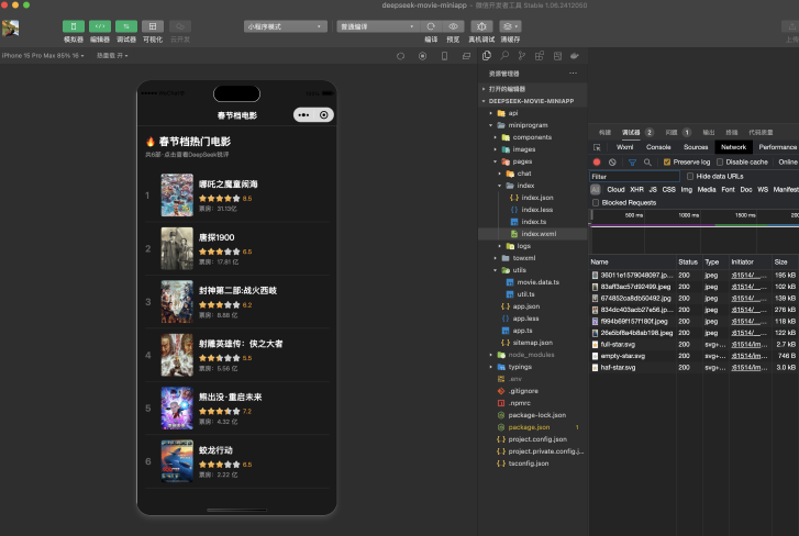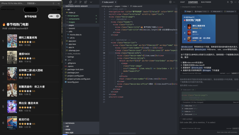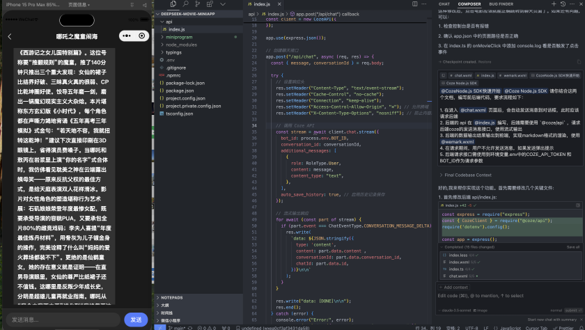 本期视频我们将会构建一个AI电影小程序!通过DeepSeek + Coze作为后端,来评价今年春节档的电影。