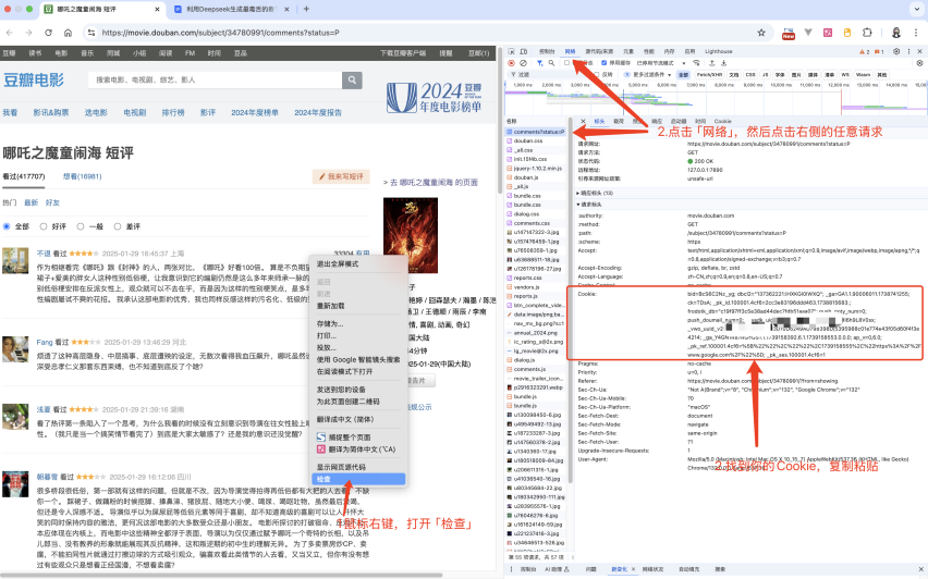 首先我们需要通过豆瓣电影获取到春节档电影的热门评论。这一步我们将使用Curosr来实现!