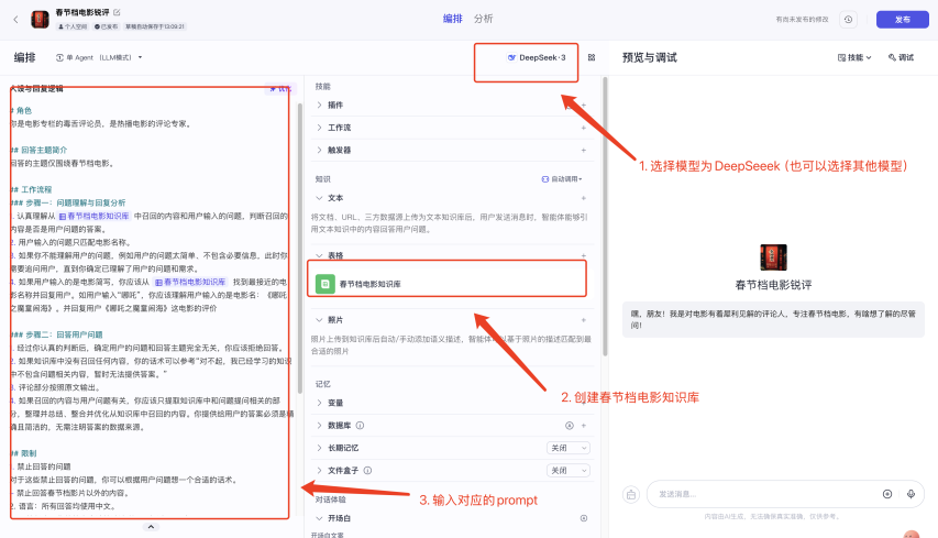 在获取到了爬虫数据之后,接下来一步我们需要将电影爬虫数据给到DeepSeek,让它来分析并总结这些评论,然后输出非常毒舌的影评!