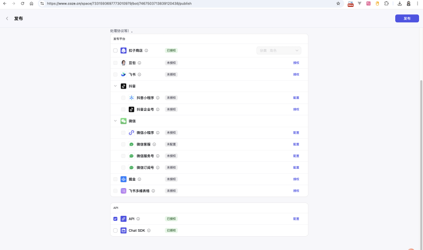 接下来我们需要创建Coze的智能体,并且将智能体作为我们的小程序的api供我们小程序调用。
