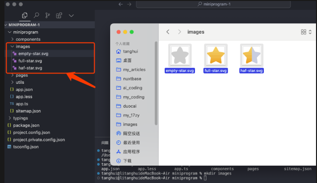 在 /miniprogram/ 下创建一个image文件夹,然后在 /miniprogram/images/ 下导入这几颗星星的svg文件,用来显示电影的评分。