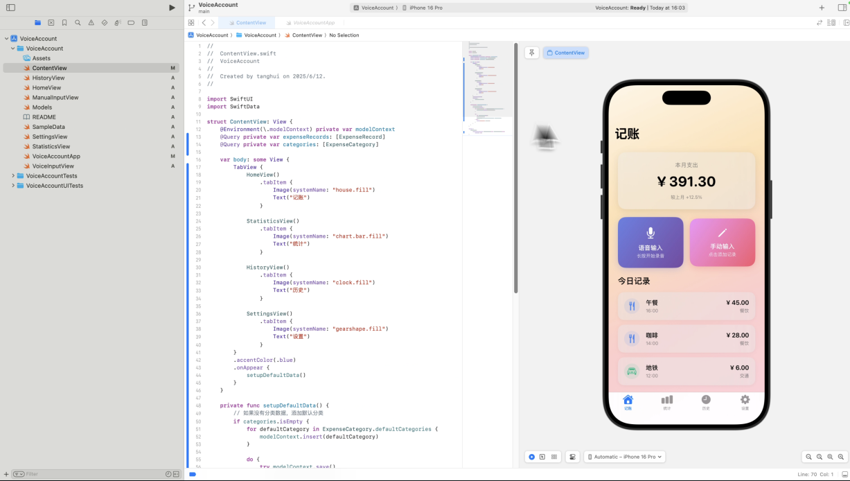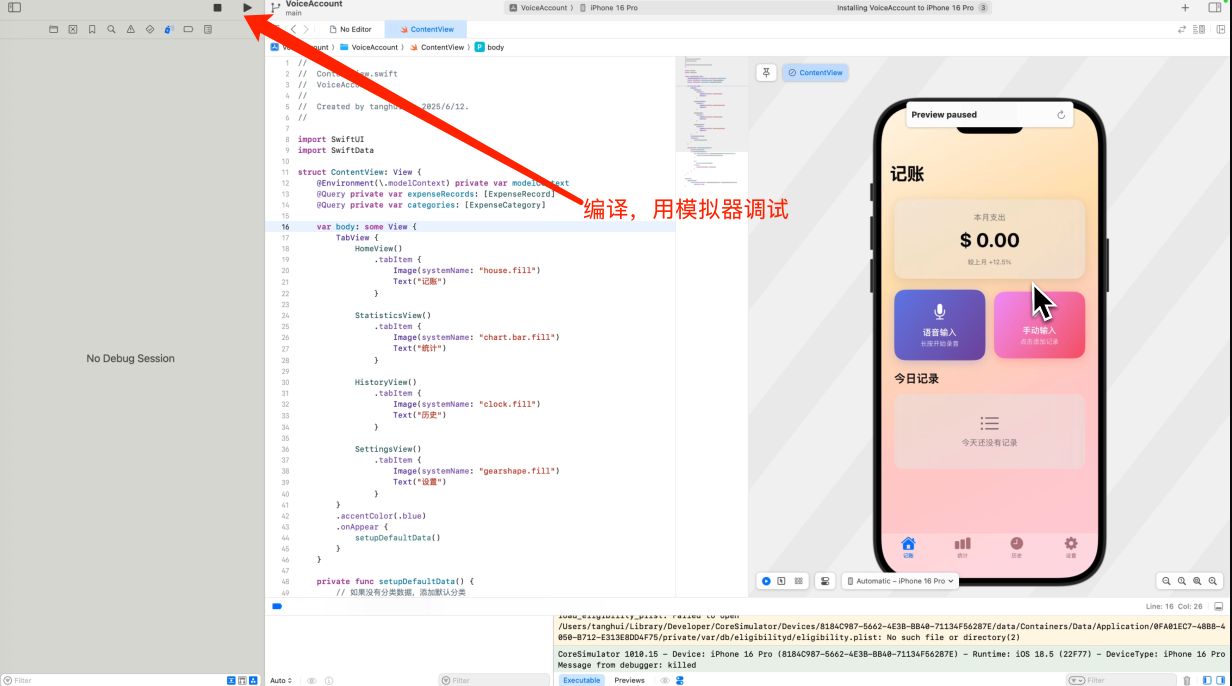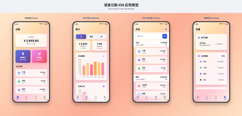 开发一款语音记账iOS应用,项目总共有4个tab:记账/统计/历史/设置。