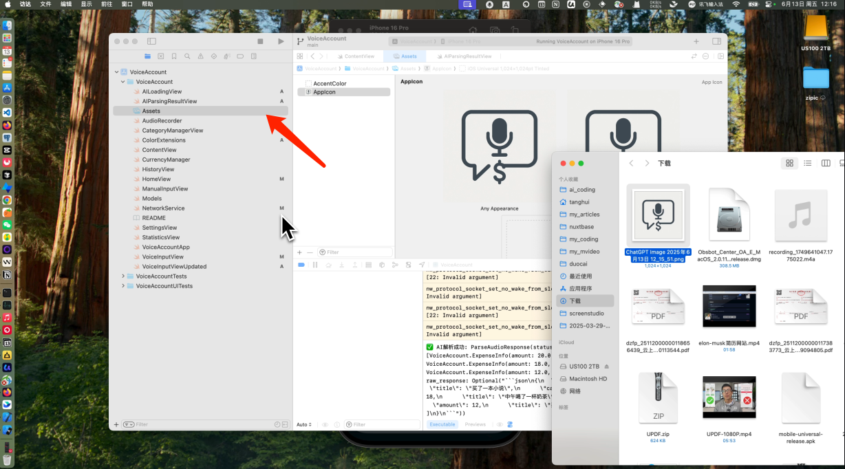 我们的产品现在还没有Logo,那么如何给产品添加上对应的Logo呢?也很简单,你只需要在XCode中点击Assets,然后拖入你自己创建好的Logo就好