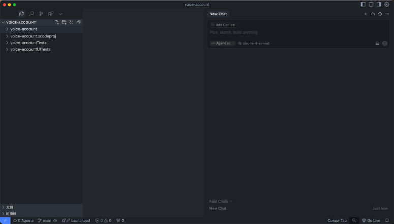 这样用Cursor同时打开 voiceAccount 这个父文件夹,Cursor就能同时拥有前后端的上下文,方便同时让Cursor修改。这算是一个小技巧。