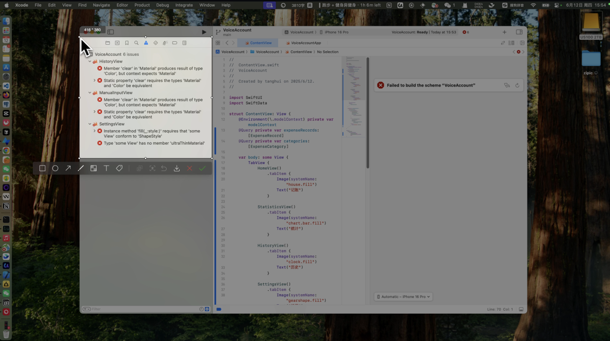 好在其实在XCode中明确给出了报错信息,遇到这些报错我们可以尝试两种办法让 Cursor实现修改: