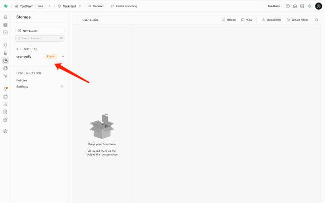 2. 用户录音存储服务,我们使用supabase的Storage实现存储