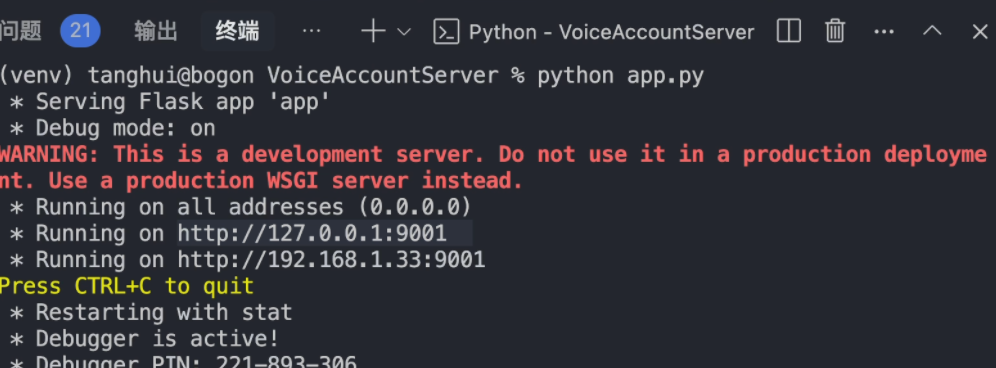 python app.py如果在终端看到项目运行起来了,那么就表示后端服务重启成功了。